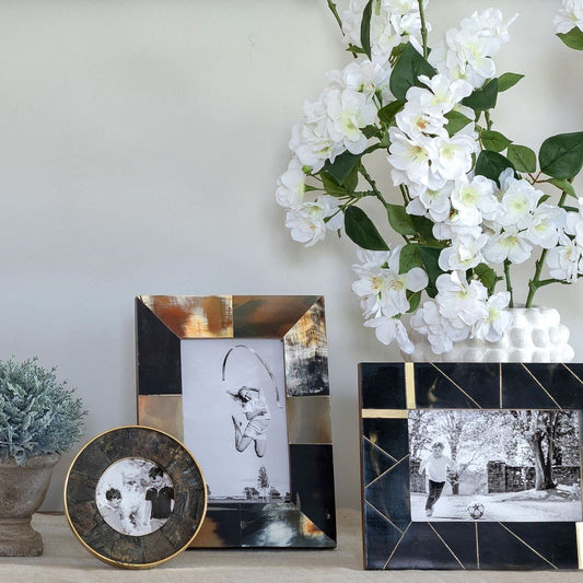 Add a touch of luxury to your interior with our opulent polished Faux Horn collection. Stunning photo frames with matching Alarm Clocks and hinged Boxes. Beautifully gift boxed in our luxury taupe packaging.