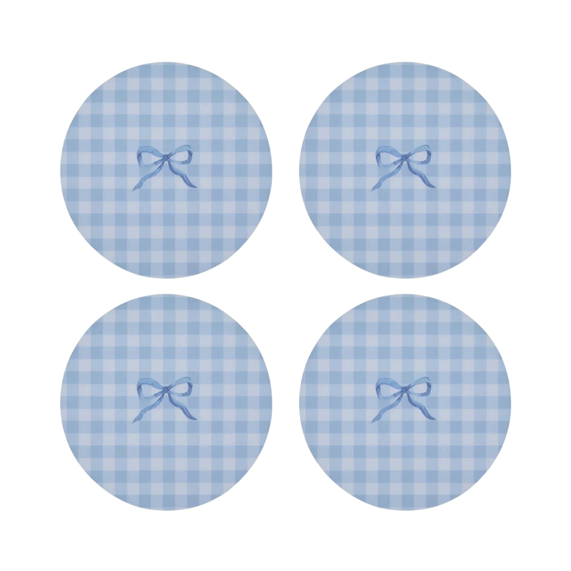 Exclusively designed by Sarah & David Ross, our Blue Gingham Lacquered Coasters are finished with multiple coats of high glass lacquer, hand polished between each coat.